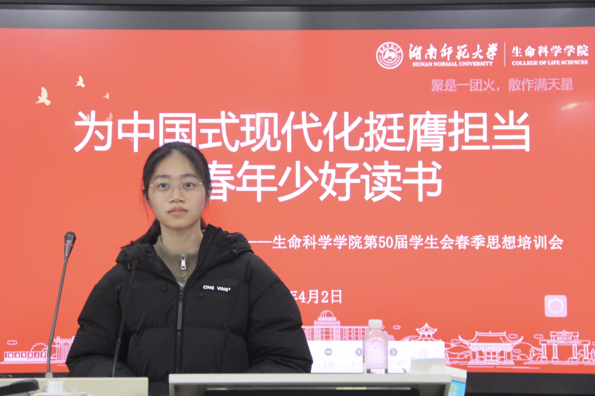 (通讯员 阳慧萍 沈怀玉)4月2日中午,生命科学学院学生会于生科院三号楼B107教室召开2026年春季思想培训会。学生会执行主席谢志艳担任主讲人,生科院学生会全体成员参与此次会议。