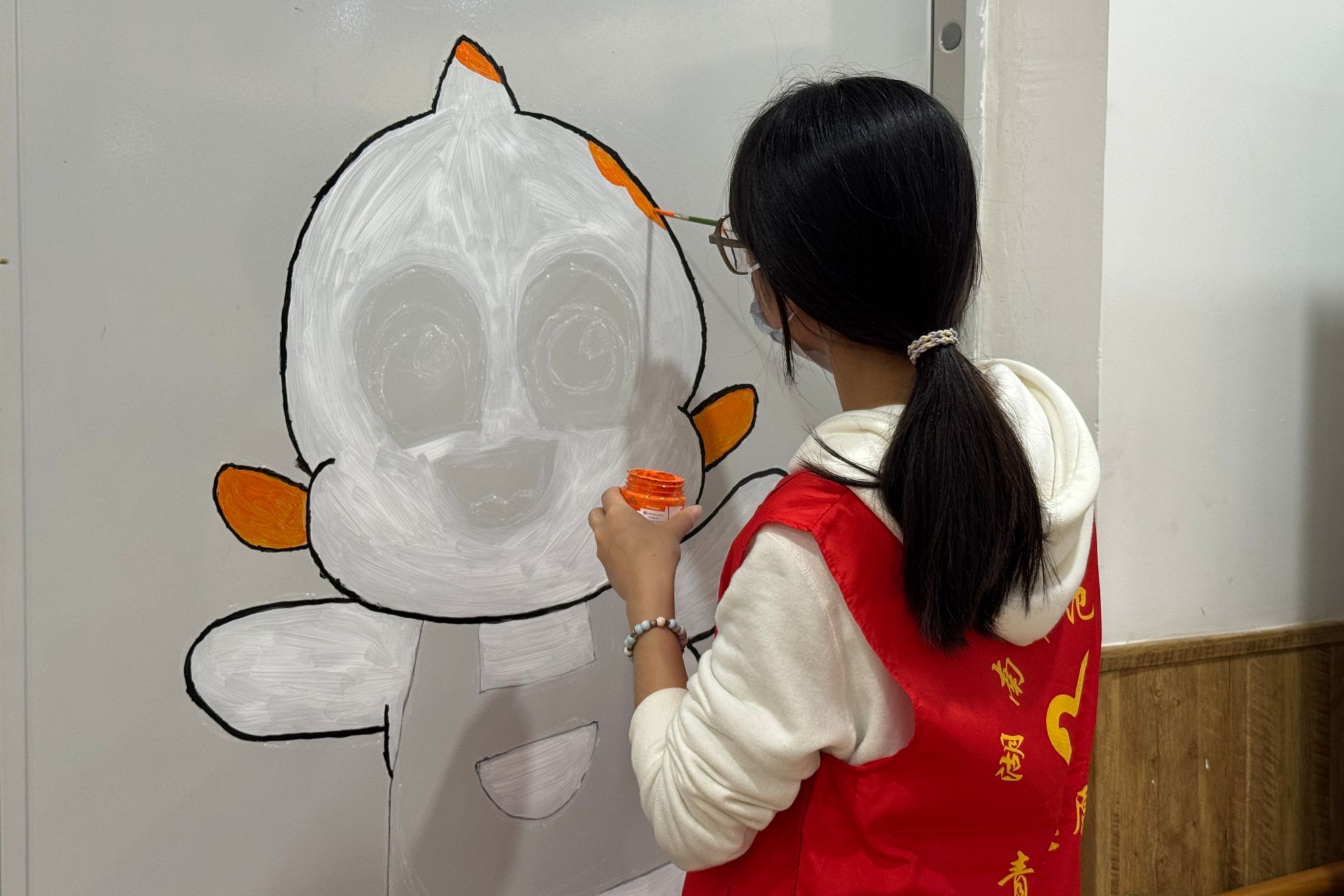 志愿者提前抵达照护中心,完成签到、物资分发与现场布置工作,随后分两大板块有序开展志愿服务。在绘画创作板块,志愿者在照护中心的白墙上进行墙绘创作,给老人们营造舒适宜居的生活氛围。在互动陪伴板块,志愿者通过PPT讲解、文艺表演等方式与老人互动交流,借助趣味提问与经典红歌唤起老人的岁月记忆;同时开展一对一陪伴服务,在倾听老人讲述过往经历的过程中,主动分享校园生活点滴,并协助有需要的老人完成进食、日常起居等事宜,以实际行动为老人提供切实关怀与精神慰藉。同学们表示,此次活动既为老年群体送去温暖与关怀,也让他们在实践中增强自身的社会责任感与服务意识。